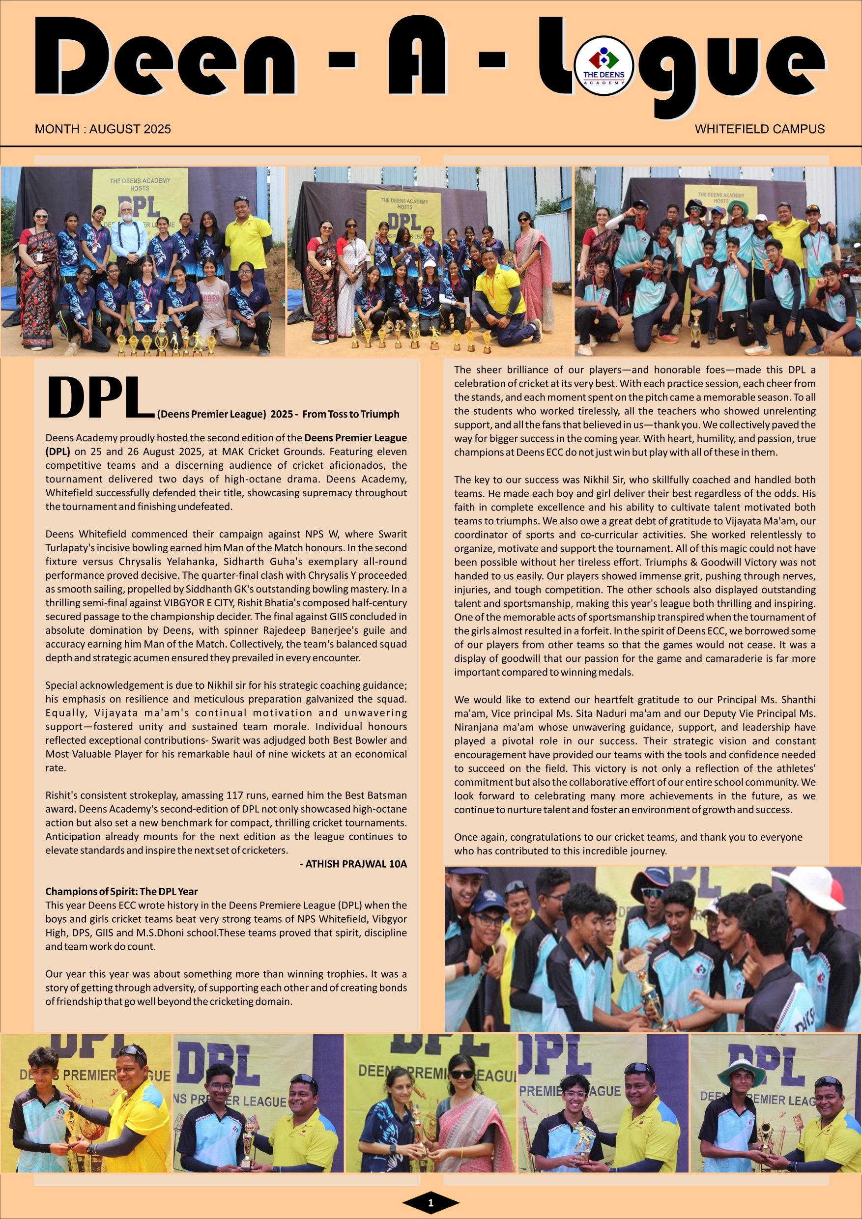 The editorial team of grade 7A takes great pride and joy in bringing the first newsletter of the academic year 2025-26! The newsletter captures the vibrancy and exuberance of life on campus, along with the other happenings that keep the corridors of Deens buzzing with excitement.