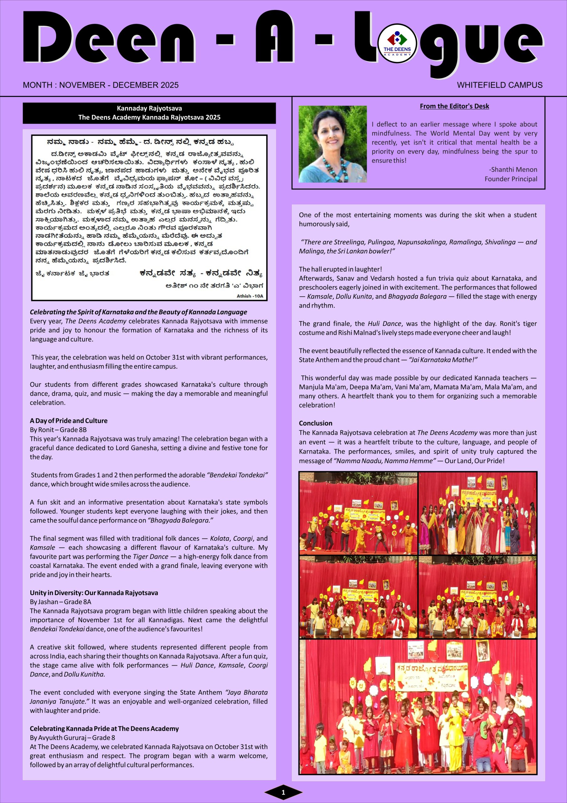 The editorial team of grade 7A takes great pride and joy in bringing the first newsletter of the academic year 2025-26! The newsletter captures the vibrancy and exuberance of life on campus, along with the other happenings that keep the corridors of Deens buzzing with excitement.